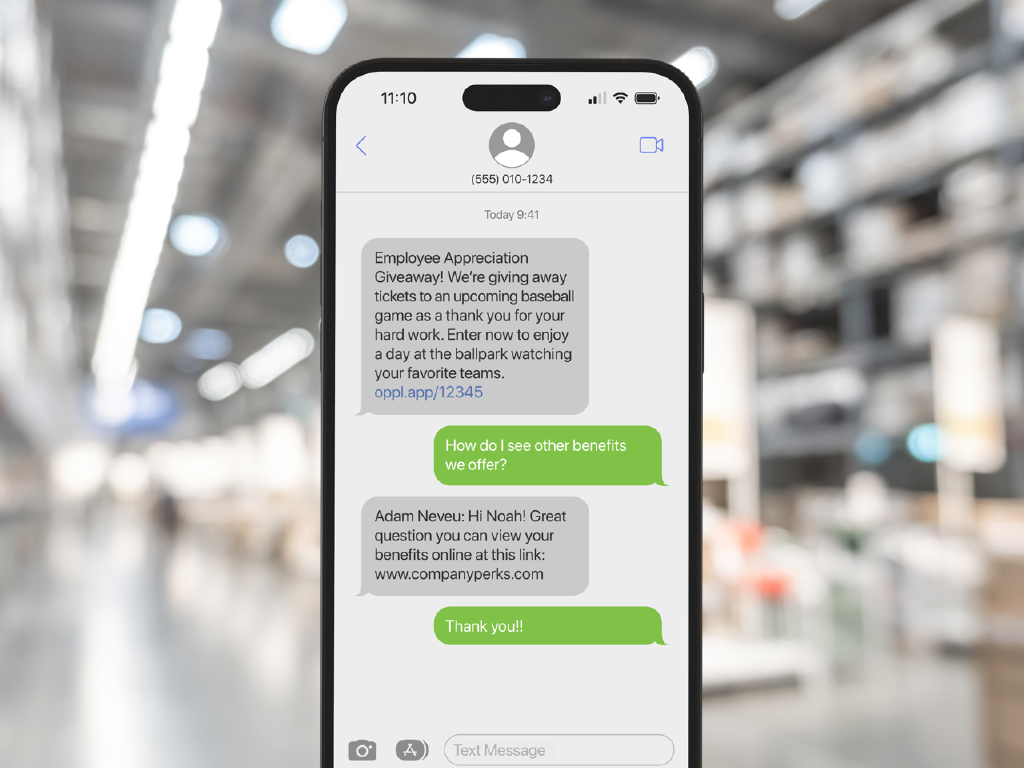 Transform how you communicate by using text messages to communicate with employees—no app download required.